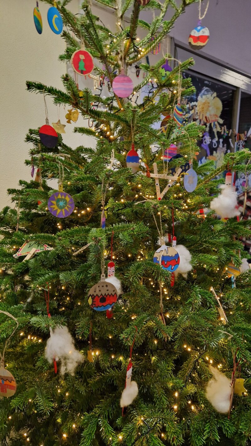 So langsam wird es in unserer Schule richtig weihnachtlich. Alle Kinder haben einen Anhänger für unsere vier Tannenbäume gebastelt. Nun wurden sie geschmückt. Einfach schön!