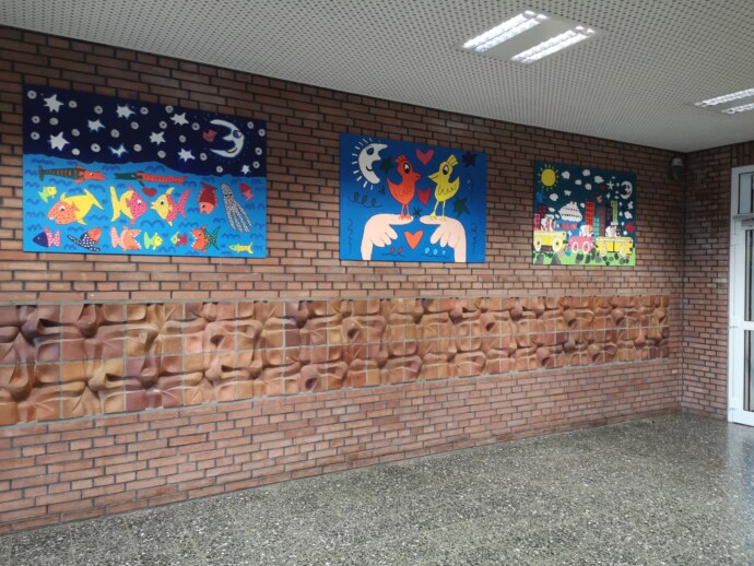 In der Projektwoche haben sich die vierten Klassen mit verschiedenen Künstlern beschäftigt und Werke von Hering, Hundertwasser und Rizzi auf große Platten gemalt. Diese verschönern nun die Flure unserer Schule. Und weil es so großen Spaß gemacht hat, wurde direkt weiter gemalt. Jetzt verzieren viele fröhlich-bunte Bilder unsere Laufwege.