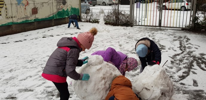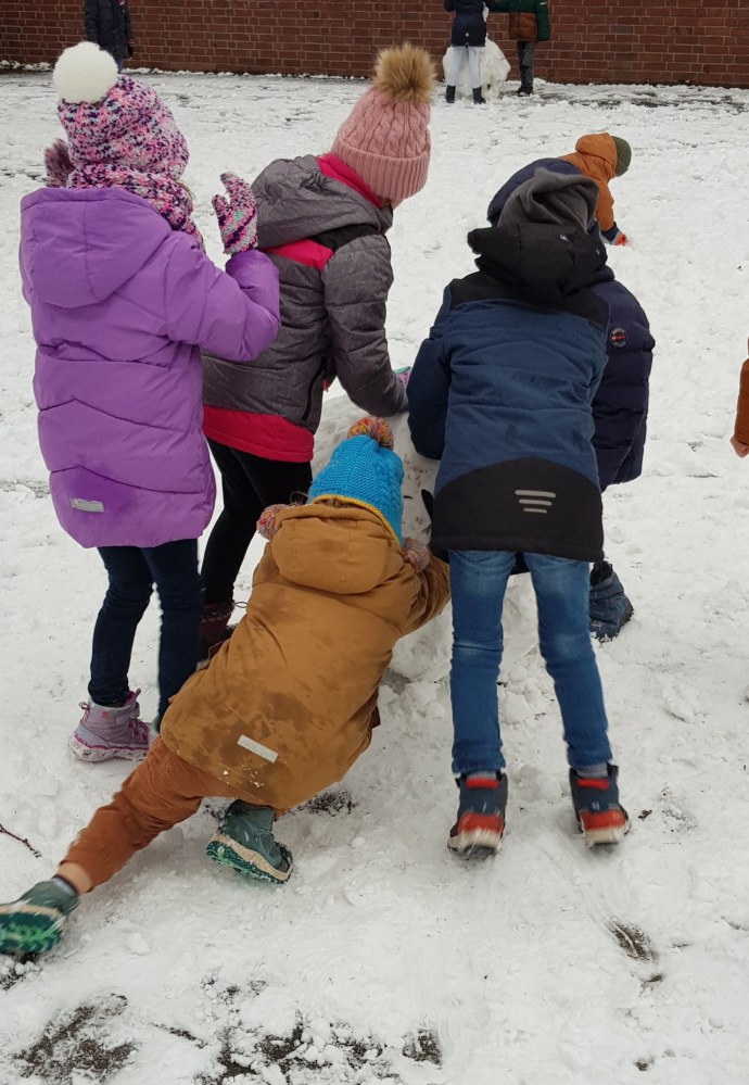 Heute hat die Klasse 1a das winterliche Wetter genutzt und gemeinsam tolle Schneemänner gebaut. Als Team haben alle mit angepackt.